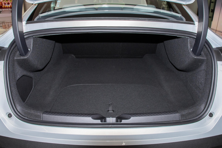 空间表现打破了运动轿跑“重颜值轻实用”的魔咒。4830mm×1905mm×1480mm的车身尺寸,搭配2900mm超长轴距,直接超越特斯拉Model 3,为车内空间奠定坚实基础。身高178cm的乘客坐进后排,膝盖距前排座椅仍有两拳余量,头部空间也未因溜背设计而局促,满员乘坐亦无压抑感。储物能力同样惊喜,100L前备箱可容纳随身背包、充电设备等杂物,464L后备箱能轻松放下两个20寸行李箱+露营装备,日常通勤与周末出游的储物需求全满足。更难得的是,车内90%以上区域覆盖软质材料与麂皮,中控台、车门内侧等常触部位触感细腻,精致缝线工艺点缀其间,告别同价位车型的廉价感,豪华质感触手可及。